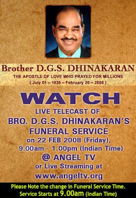 Live Telecast of Bro.DGS Dhinakaran Funeral Service 1234 , dead , died , Evangelist DGS Dinakaran dies , live telecast Edit Click the above image to Enlarge it Share on Facebook Share on Twitter Share on Google Plus RELATED POSTS Live Telecast of Bro.DGS Dhinakaran Funeral Service Reviewed by Simon on 10:09 AM Rating: 5